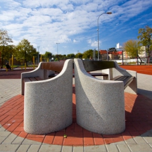 mała, architektura, kwietniki, siedziska, stopnie schodowe